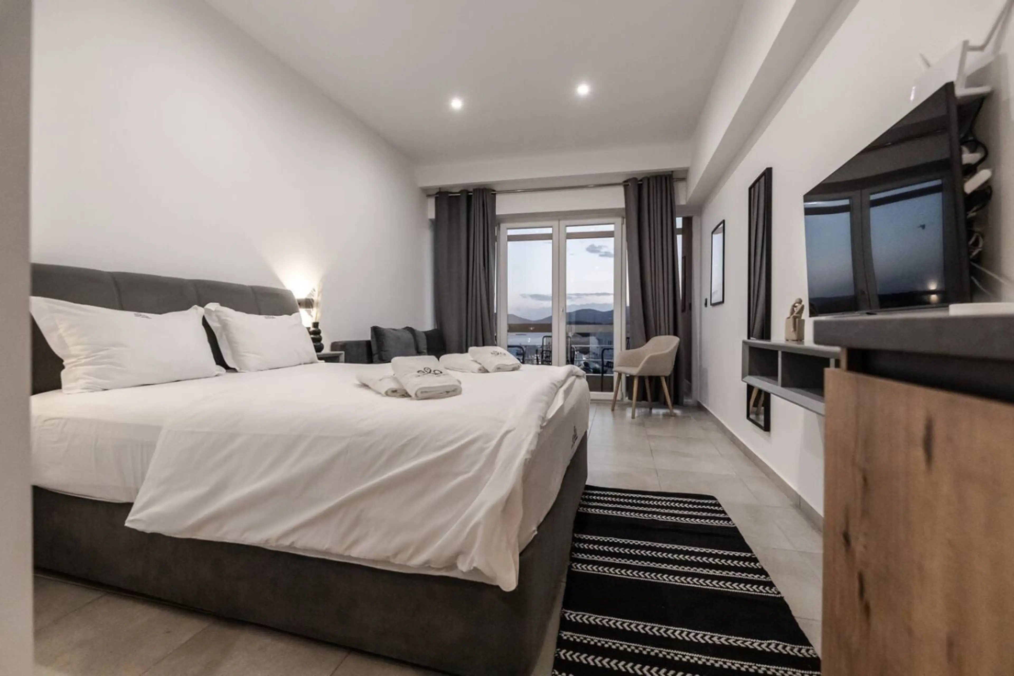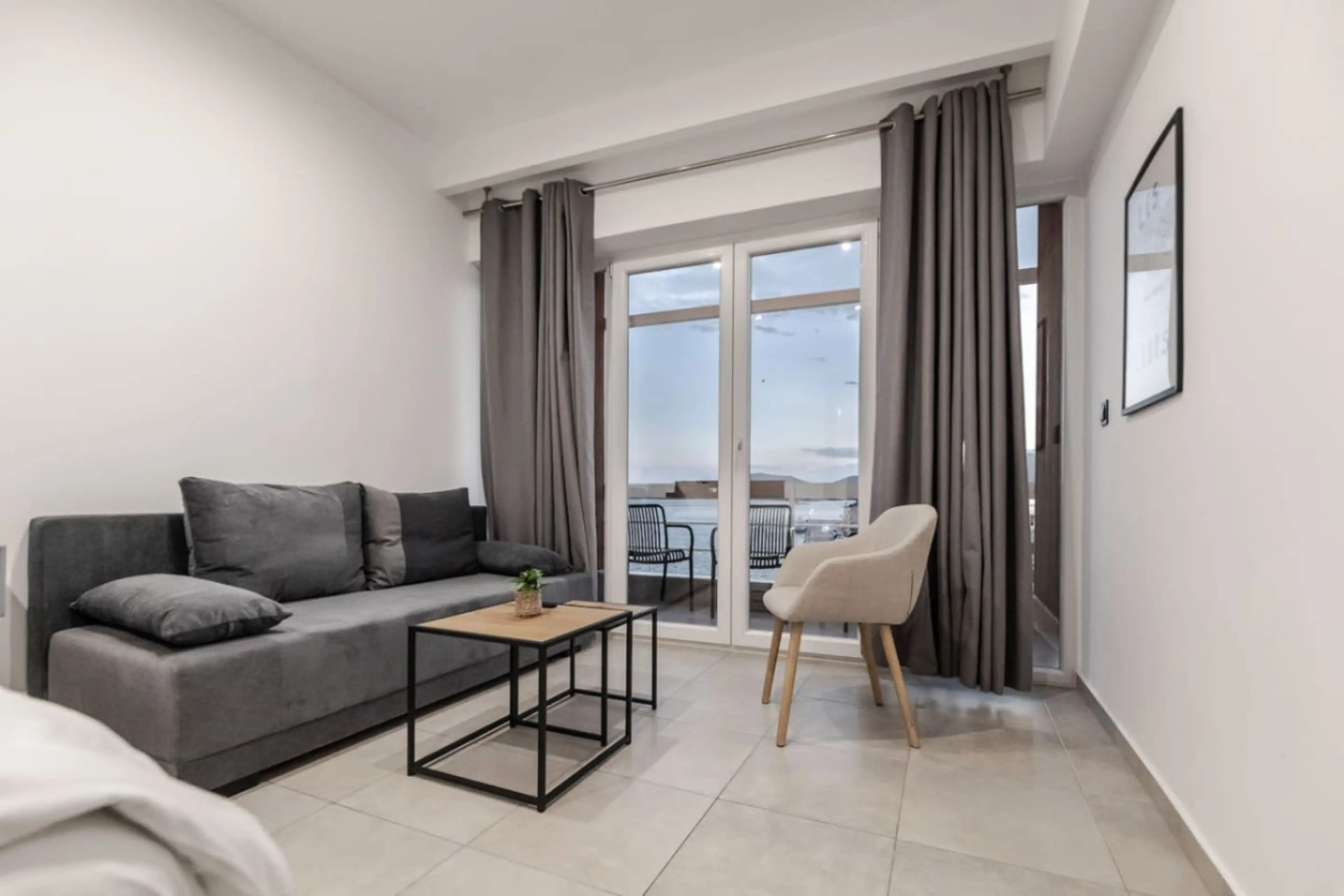 Beachfront Location: ELA apartments in Volos offer direct beachfront access and a sun terrace. Guests enjoy sea views and a relaxing atmosphere. Comfortable Amenities: The apartment features air-conditioning, a terrace, kitchenette, balcony, and free WiFi. Additional amenities include a private bat...